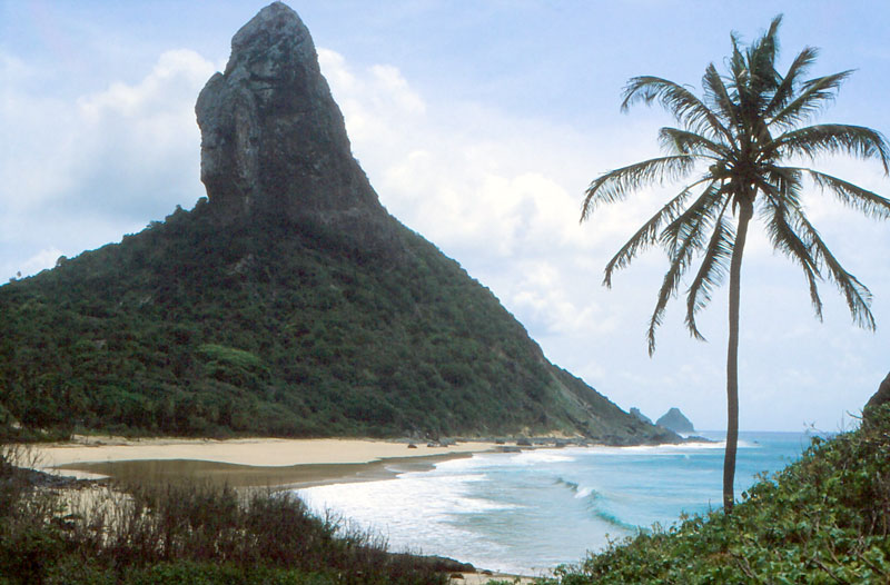 Pour l'heure, plus aucun signe ne trahit la présence de nos compagnons d'atterrissageatterrissage : arrivée, depuis le grand large, à proximité d'une côte. et, au terme de deux grosses semaines de mer, nous n'avons d'yeux que pour Fernando do Noronha. Au nord, un semis d'îles et de rochers frangés d'écume, où le basalte le dispute à la verdure. Devant nous, l'île principale au relief très accusé abrite quelques plages étincelantes, dominée par la vertigineuse aiguille de lave du Pico, sous la ronde des frégates et des fous de Bassan. Posé sur des eaux bleues, turquoises, versicolores, où passe l'ombre des petits cumulus poussés par l'alizé, cet archipel qui croule sous la végétation semble être un prélude parfait à notre découverte du Brésil.