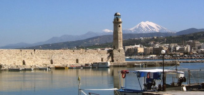 Quelle galère pour grignoter les milles le long de la côte crétoise, jamais autrement qu’au louvoyagelouvoyage : action de remonter le vent en tirant des bords (en zigzag). ou au moteur ! Les jalons suivants sont Bali, un hameau de pêcheurs, puis Rethymnon, annoncé par un joli phare hexagonal. Le port en est désert, à côté d’un bassin à l’italienne pour les pêcheurs, que domine un château médiéval. C’est la première ville vraiment plaisante que nous voyons en Crête : on y trouve des portes vénitiennes, des moucharabiehs, des minarets et aussi des ensembles éminemment grecs. Bonheur supplémentaire, oublié depuis longtemps, nous profitons avec nos amis d’une journée presque tropicale, avec baignades, balades et farniente.